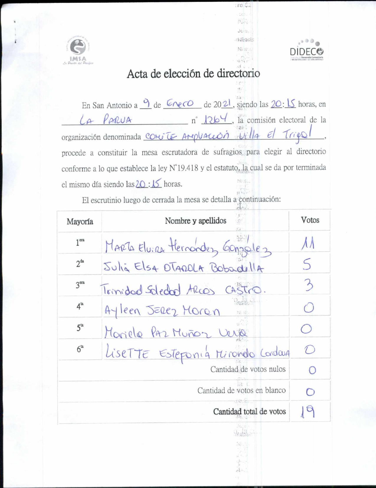 Acta elección directorio Club Depotivo Cultural Social Senseti LIKD Miramar