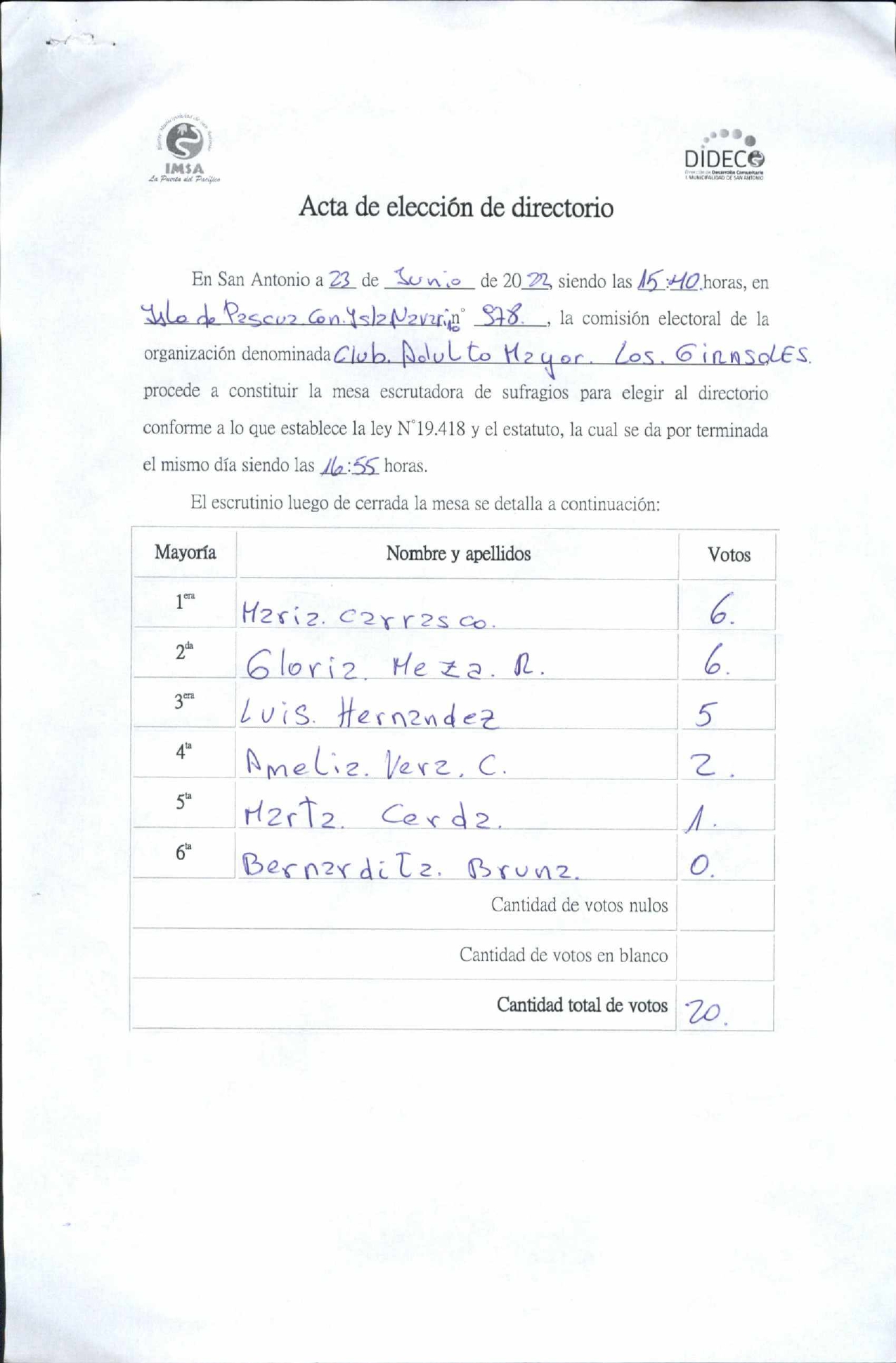Acta de elección "Club Adulto Mayor Los Girasoles"