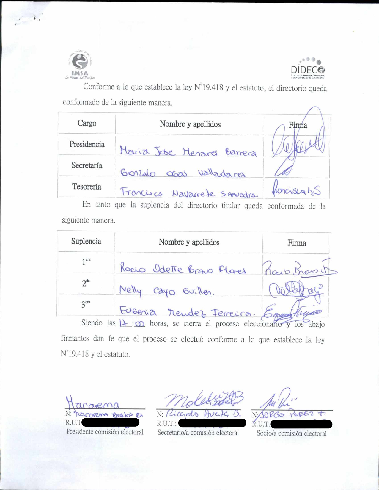 Acta de elecciones "Comité Habitacional Eben Ezer"
