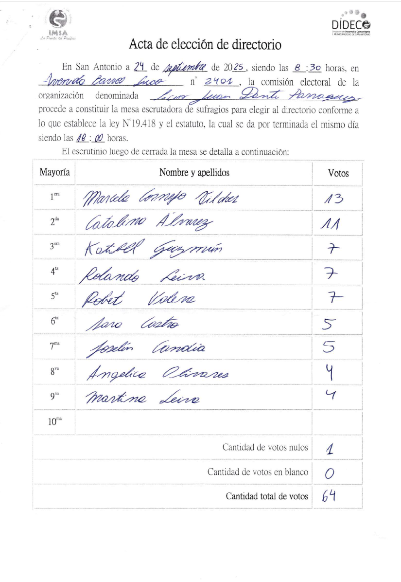 Acta Centro de Padres Liceo Juan Dante Parraguez