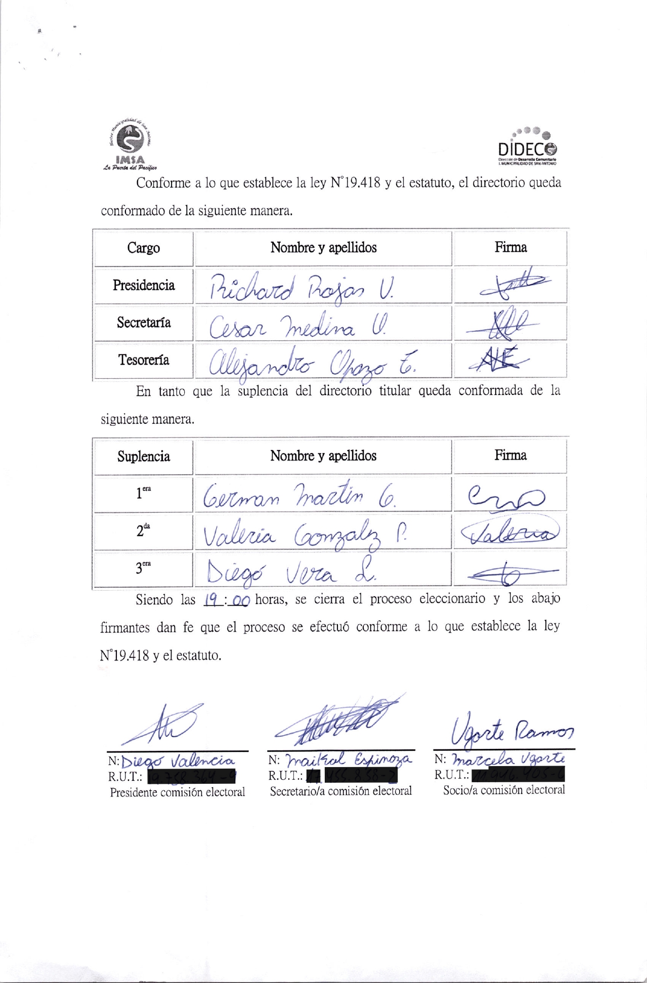 Acta de elecciones CLUB DEPORTIVO CRISTO REY