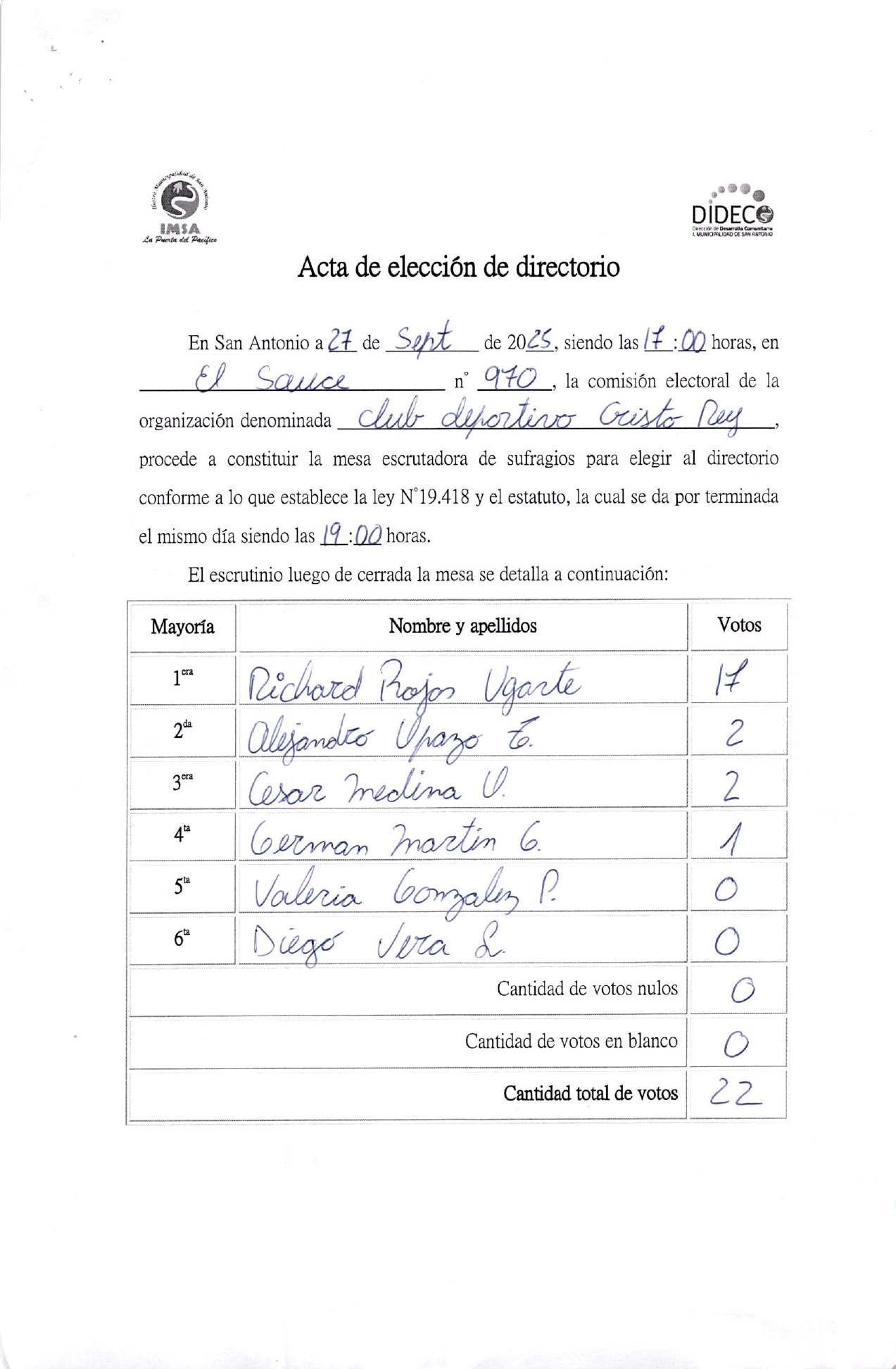 Acta de elecciones CLUB DEPORTIVO CRISTO REY