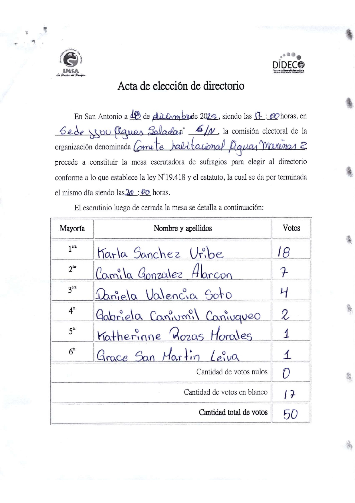 Acta de elecciones COMITE HABITACIONAL AGUAS MARINAS 2