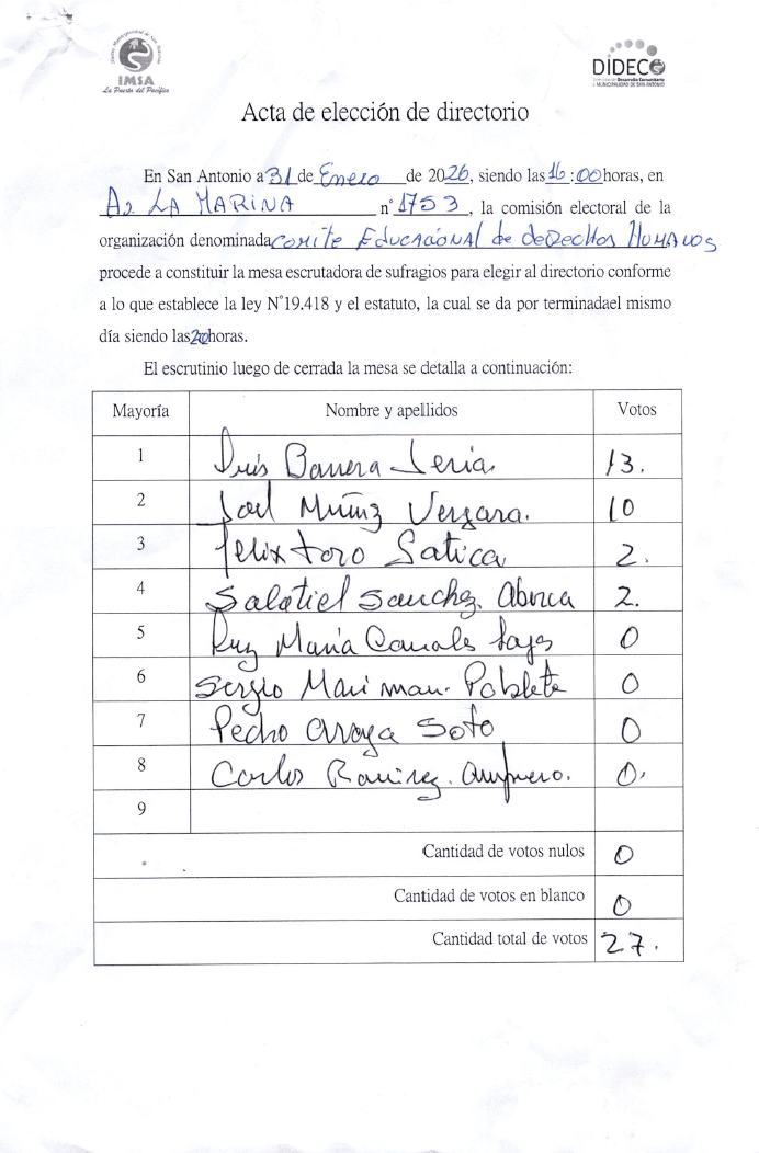 Acta Comité Educacional de Derechos Humanos