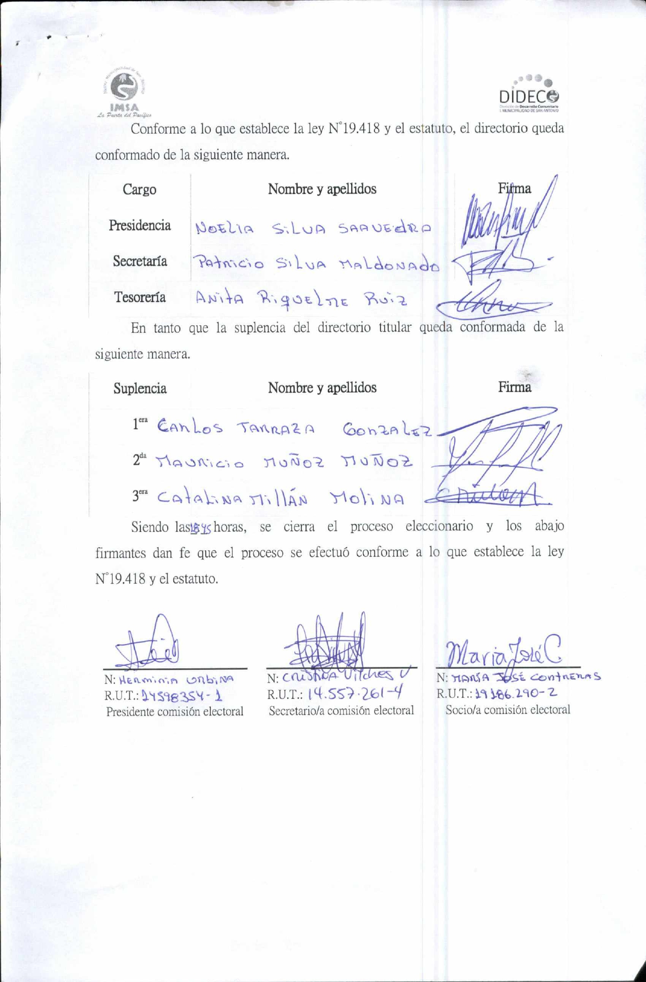 Acta de elección directorio Comite Habitacional Vida Nueva